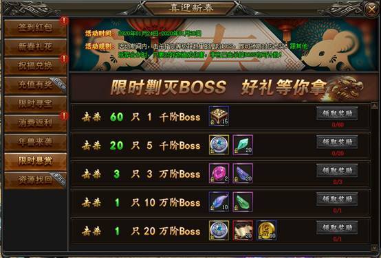规则:根据击杀对应阶段的BOSS数量领取奖励