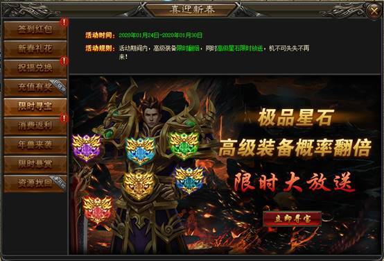 规则:神之宝藏中有概率抽取10级星石,同时高级装备概率翻倍。