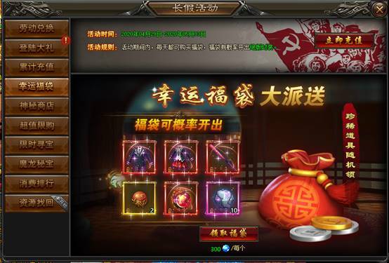 规则:可花费钻石购买福袋,每个玩家每天最多可购买20个。