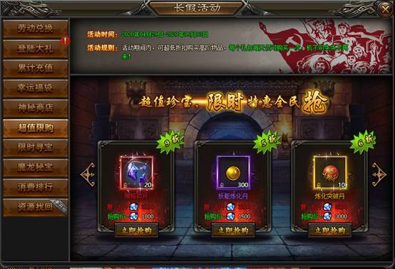 规则:活动期间,神之宝藏中众神装备寻宝概率翻倍。