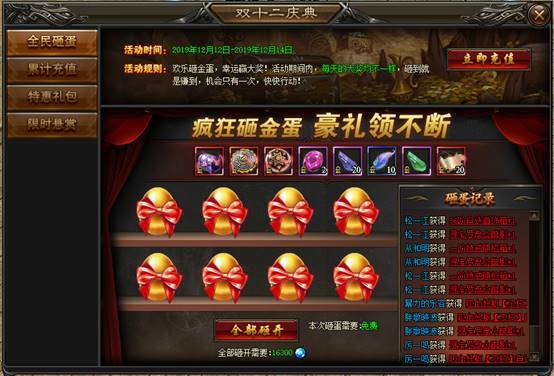 第一次砸蛋免费,可以花钱一次性全部砸完,也可以一个一个砸。