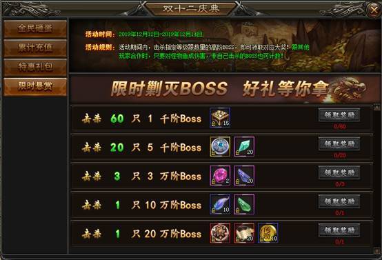 规则:根据击杀对应阶段的BOSS数量领取奖励