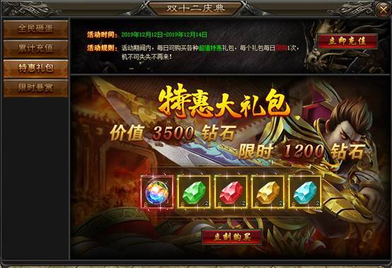 规则:每个礼包每天限购1次,每天12点刷新。持续3天,每天的礼包奖励都不一样。