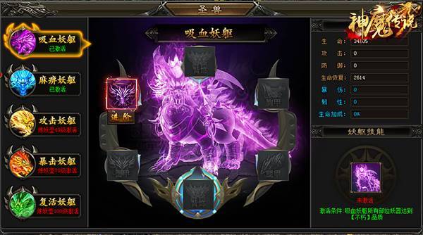 想要将圣兽的属性加成到主角身上,可以利用炼妖系统。将BOSS收入炼妖壶中炼化成妖丹或者妖器,穿戴妖器可以提升主角的各项属性,成套的妖器还会激活妖躯技能,即可实现属性加成 。