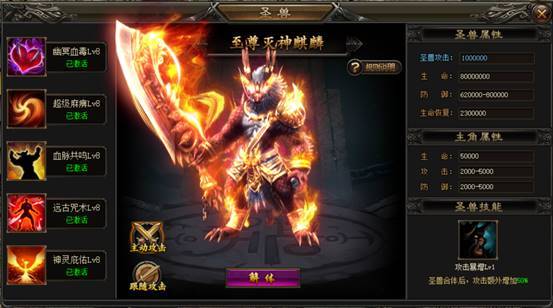 集齐并合成五只圣兽后,至尊灭神麒麟圣兽攻击力瞬间翻倍,提升玩家战斗力,让实力更上一层楼!